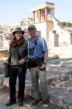 | Another largely non-birding trip, this time in search of much-needed sunshine with the added attraction of some hiking, migrant birds and endemic plants. We started in the mountains of Omalos, but one day of cold, wind, rain and cold sent us scuttling southwards to the coast. Before we left we did manage to find some flowers, including tulips and several orchid species, and we viewed the top of the Samaria Gorge, even though it was still closed for the winter. Through the murk we did also see at least 8 Wood Sandpipers, Raven, Northern & Black-eared Wheatear, Alpine & Pallid Swifts, Blue Rock Thrush and a large flock of Red-footed Falcons. Simon also managed to fluke a Lammergeier overhead. Hmmmph! Our next stay was in Paleohora in the southwest, which was beautifully deserted, with an almost forgotten feel to it out of season. We picked a hotel near a promontory, which turned out to be a reasonable migrant trap, and as we arrived we found an exhausted Wood Sandpiper by the front door, boding well for future migrant searches! The promontory itself yielded Wryneck, Short-toed, Wood and Crested Larks, Subalpine & Ruppell’s Warbler, Wood Warbler, Griffon Vulture, Squacco Heron, Yelkouan Shearwater, Whinchat, Spotted Flycatcher, and a Thrush Nightingale right in the town centre . One evening, after another enormous meal, no doubt including the ubiquitous Greek Salad, we stumbled across a Beech Marten foraging on the beach – a first for both of us! More flowers hesitantly identified included the amazing, huge Dragon Arum lily (Dracunculus vulgaris), Gladiolus illyrica, and more orchids including Serapias spp and Orchis spp. We also found several butterflies in spite of the wind, such as Clouded Yellow and an obliging Swallowtail up on the ruins of the Venetian castle above the town. One day we took a boat to Sougia and walked back in the wind (about five hours at a slow botanising pace). On stopping to admire the Lissos ancient ruins, we found Sardinian Warbler, Raven, Whinchat and Wood Warbler. Also here were Wood & Crested Lark, Collared Flycatcher, Red-throated Pipit and Woodchat Shrike. Another expedition was the walk through the beautiful Irini Gorge, which was very sheltered and warm, offering a welcome respite from the wind. Here we saw Collared Flycatcher, Blackcap, Wood & Willow Warblers, Cuckoo, Bee-eater and best of all, a roosting Scops Owl. New butterflies for the trip included Speckled Wood and Wall Brown, and we also enjoyed seeing wild Cyclamen everywhere.
