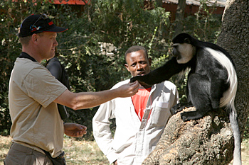 Pigeon and a ridiculously tame troupe of Colobus Monkeys,