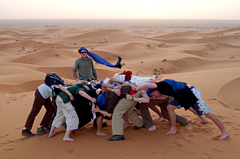 Correctly garbed with sheshes and sunglasses we survived a desert sandstorm, and enjoyed a truly memorable sunset camel ride on the mighty dunes of Erg Chebbi.