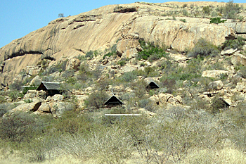 We arrived at the sensational Erongo Wilderness Lodge just on dark, and settled in for two nights of tented luxury, and great food. The animals clearly like it too – from the dining room we had great views of Sengi (=Elephant Shrew), Dassie Rat, Rock Hyrax, Black Mongoose, Small-spotted Genet and Cape Porcupine!