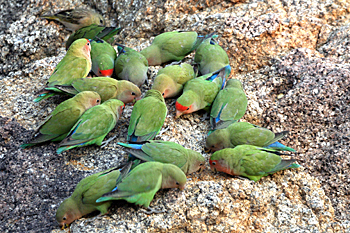 By day, the same spot was superb for birds, drawing in stacks of Lovebirds, plus Great Sparrow, Hartlaub’s Spurfowl (a mega speciality of Erongo), Green-winged Pytilia and more besides.