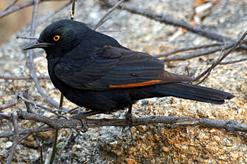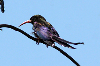 On our full day around Erongo, accompanied by Stephen Lowe, a chance-met former Secretary of the NHS (!), we visited a section of dry river bed near Umaruru, turning up Rueppell’s Parrot, Pied Babbler and Crimson-breasted Shrike and Violet Wood-hoopoe (again).
