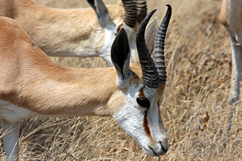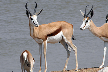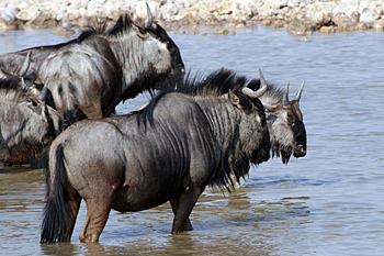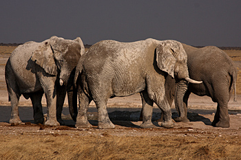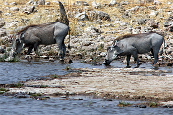 Etosha National Park lived up to its reputation for amazing sightings of wildlife for us. The park is dominated by the vast salt pan, and the dry, dusty desert landscape results in large concentrations of animals and birds at the many waterholes and natural springs.