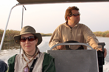 Our journey into the fabled Okavango delta started at the very comfortable Lawdon’s Lodge at the top of the Okavango Pan-handle, a hotel complete with fabulous, massive cabins on stilts and a swiming pool which electrocuted swimmers....