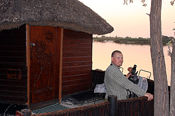 Our journey into the Caprivi Strip, the odd north-eastern extension of Namibia covered in dry mopane woodland, was broken by a stop at Sarasunga River Lodge, overlooking the Okavango River, with Angola on the other side – a country tick for us all.