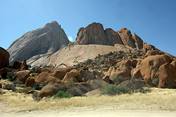 Up and away with Koos, our local driver, and a fairly long drive to the amazing rock formations of Spitzkoppe, a series of massive granite exfoliation domes (a.k.a. ‘inselbergs’) isolated on the very edge of the Namib desert.