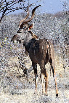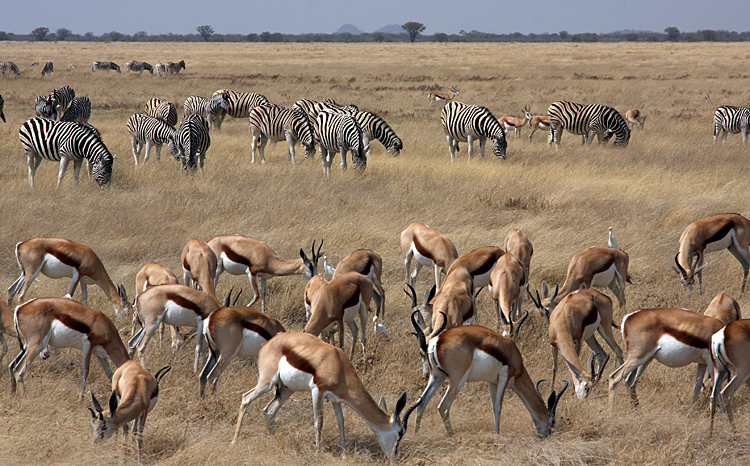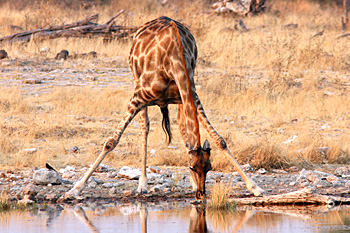 Etosha National Park lived up to its reputation for amazing sightings of wildlife for us. The park is dominated by the vast salt pan, and the dry, dusty desert landscape results in large concentrations of animals and birds at the many waterholes and natural springs.