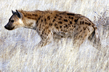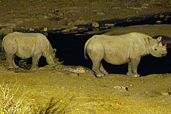 Other features of the Camp were the Hyenas, which were often heard very close to the tent with their manic laughing serving as an alarm call for us just before dawn. They even tried their luck harrying the young Black Rhino at the waterhole without success.