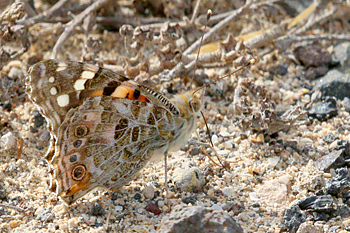 We identified a good number of endemic plants and insects (including the brilliantly named Histrionic Cloak-and-dagger Bee!), and after a very hazy day when a south-easterly wind blew in masses of dust from the Sahara, there was an obvious and very large influx of Striped Hawk-moths and Plain Tiger butterflies, many of the latter being unlike the local population in having white hindwings. This was the form alcippoides.