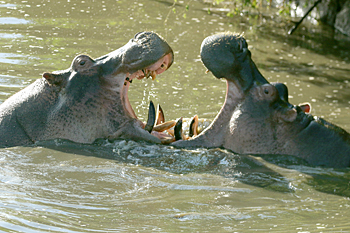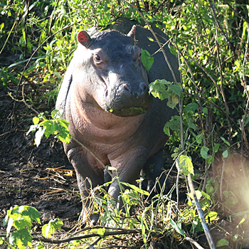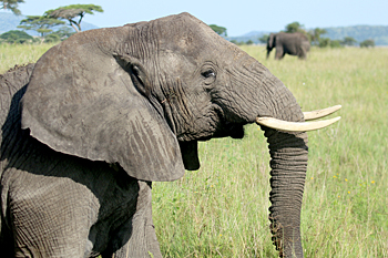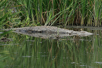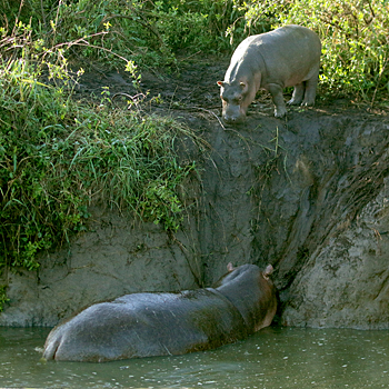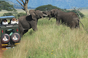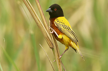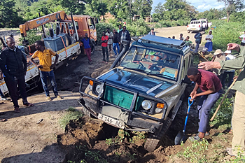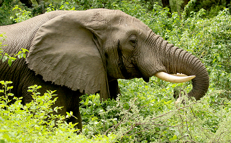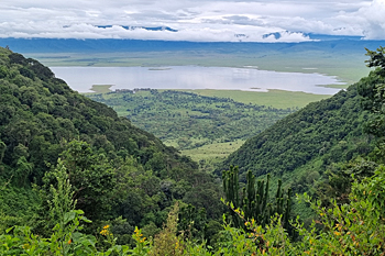 Next was Lake Manyara, where recent tectonic movements have flooded out large areas and made some inaccessible, but have also created highly productive wetlands where we saw masses of birds, including Dwarf Bittern, Golden-backed Weaver and many bishops and warblers. The woodlands turned up Purple-crested Turaco, Usambara Barbet and much more, and we had two road adventures: first we were blocked by an Elephant and a tree it had felled, and then we got in a massive tangle with a bomb crater of a collapsed road with a lorry stuck in it. We got stuck too! The overnight stop produced Verreaux's Eagle and Grey-headed Bushshrike.