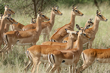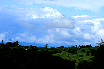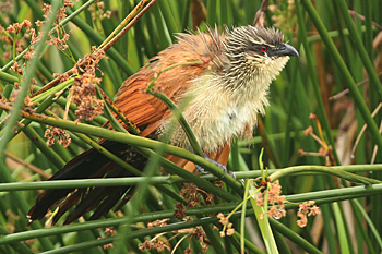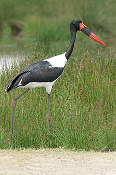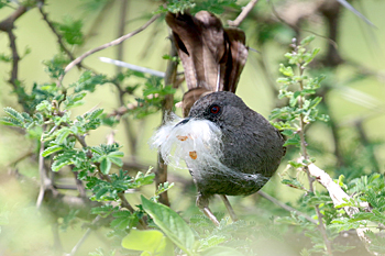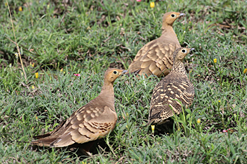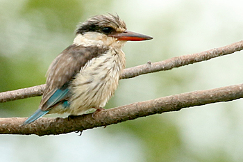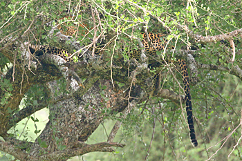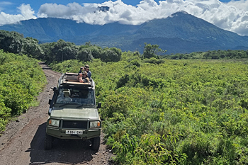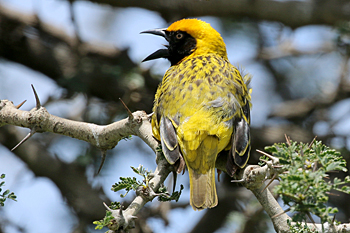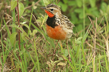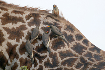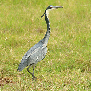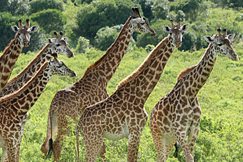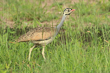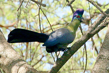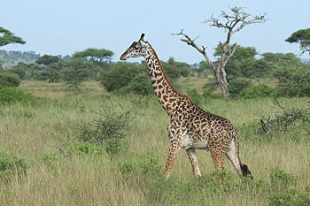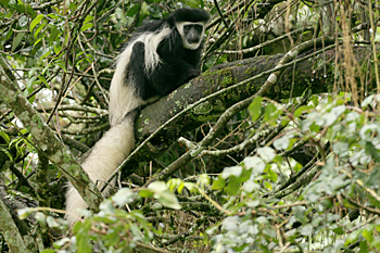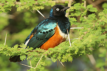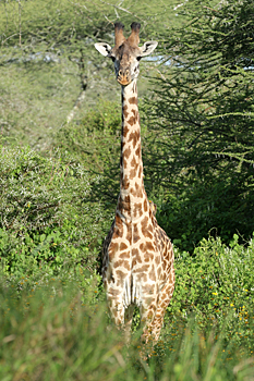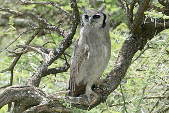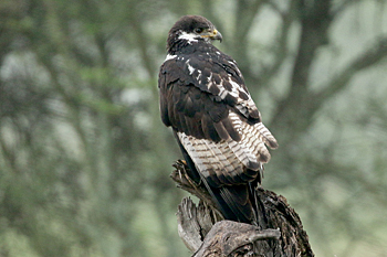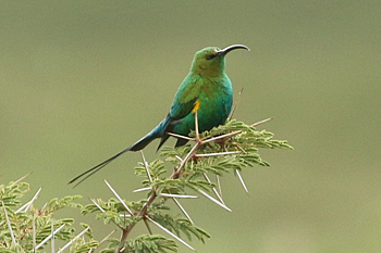 Our final destination was Arusha NP, which is dominated by the 4566m Mt Meru. The forests were damp and rather quiet, but we found the endemic form (and perhaps species) of Guereza, or Colobus Monkey, plus Kenrick's Starlings, White-eared Barbets, Black-headed Apalis, Hartlaub's Turacos, the endemic Broad-ringed (or Kilimanjaro) White-eye and Silvery-cheeked Hornbills. The plains (in better weather) were spectacular, and we said goodbye to Tanzania with Sentinel Lark, Moustached Grass Warbler, Scaly Spurfowl and many other birds, plus the most astonishing mega-herd of over 65 Masai Giraffes!