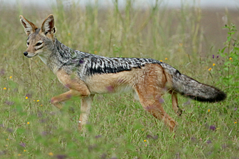 We birded around the lodge next morning, seeing Bronze Sunbird, Abyssinian Crimsonwing and more besides, then descended across a bizarre moorland habitat, via Golden-winged and Malachite Sunbirds, widowbirds, Anteater Chats and others. We finally reached the gateway to the Serengeti, where at once we were surrounded by thousands of Zebras and Wildebeest on migration! We found African Wolf, Black-backed Jackals, Spotted Hyenas and more besides. Incredible: and we hadn't even really started.